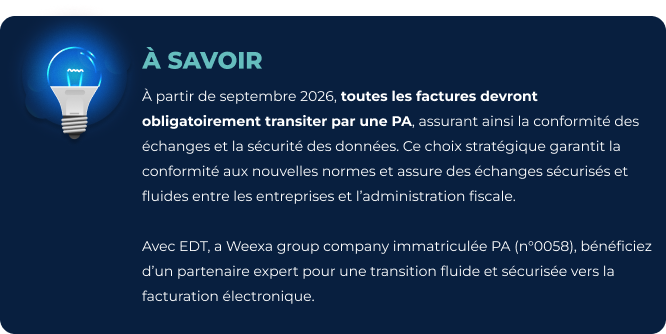 EDT, a Weexa group company, immatriculée PA (n°0058), est un partenaire de référence pour une facturation électronique simplifiée.